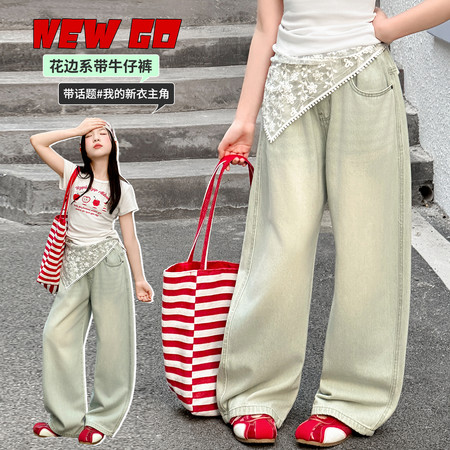 点*美下载视频“6807款蕾丝花编三角巾牛仔裤”