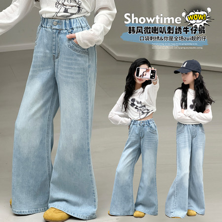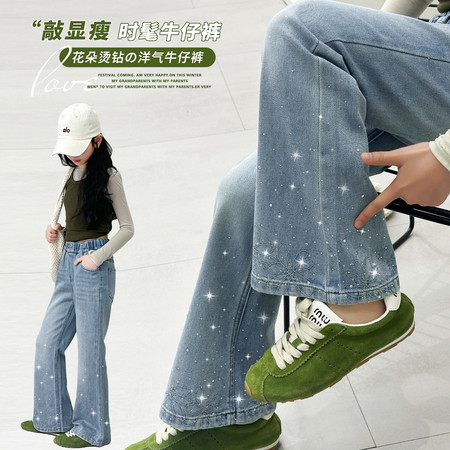 1*0下载视频“6812脚口烫钻绣花喇叭裤”